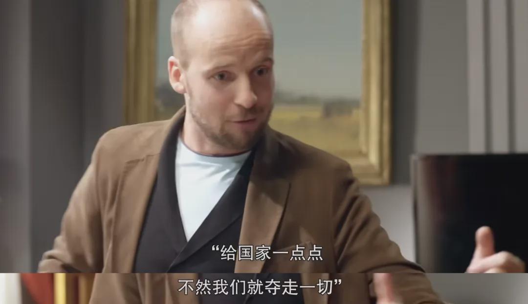 比如有一幕,总统府请来一位所谓的知名导演,拍摄一条诚信纳税的宣传广告,这位导演提供的口号都带有前苏联时期浓重的“掠夺色彩”和“威胁意味”,他的口号是这样的:“给国家一点点,不然我们就夺走一切。”